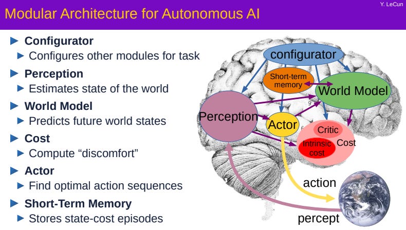 楊立昆的核心主張:智能的核心是腦袋裡有一個能預測「我做這件事,世界會怎麼變」的內部模型。